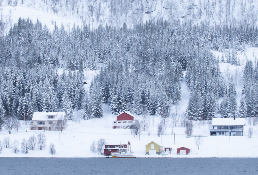 ノルウェー北極圏2日目 In the Norwegian Arctic:Day2 -Krokbukta 未分類 2026.03.102026.02.28 2026年2月15日日曜日 県道862豪線沿い。Krokbukta(クロークブクタ)深く狭い入江で対岸の雪景色が目を引いた