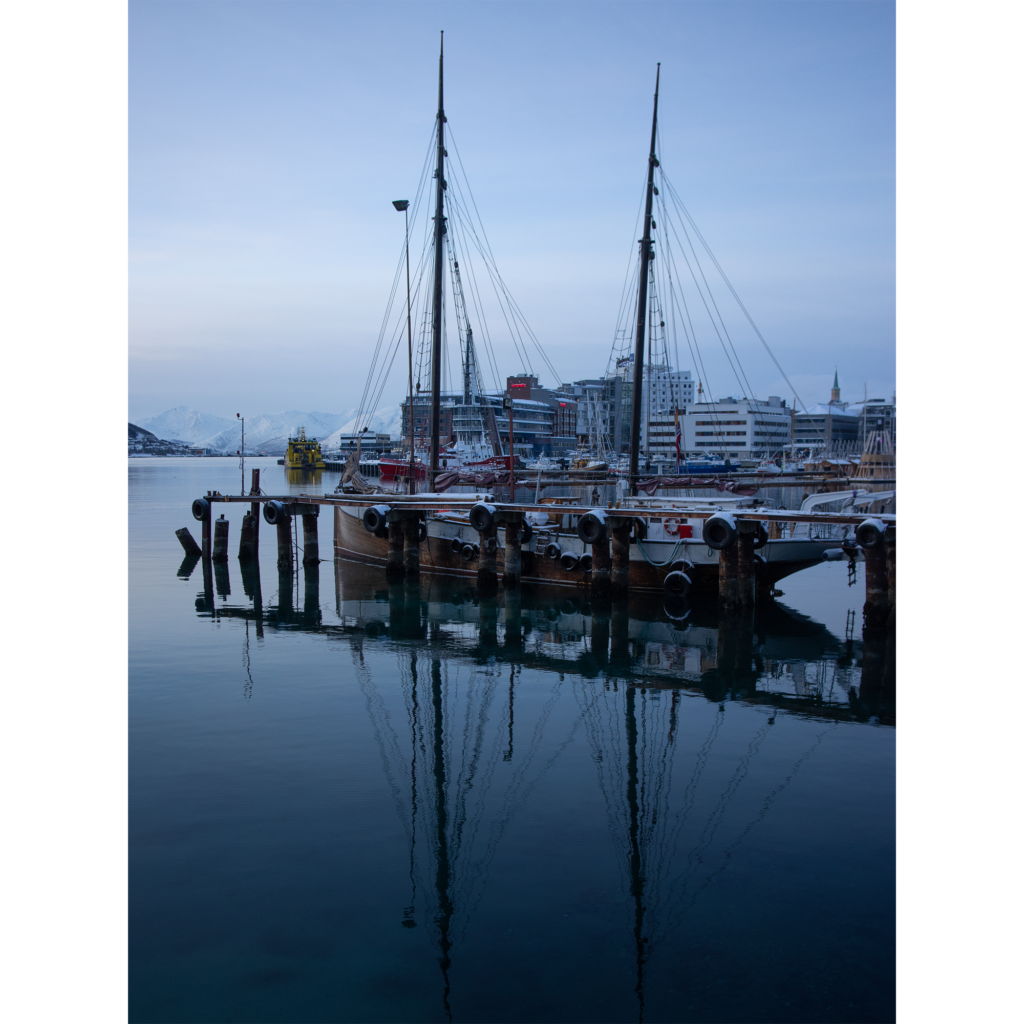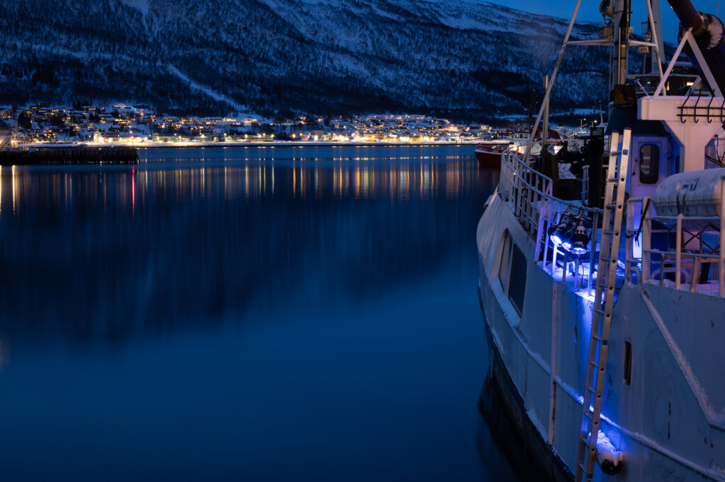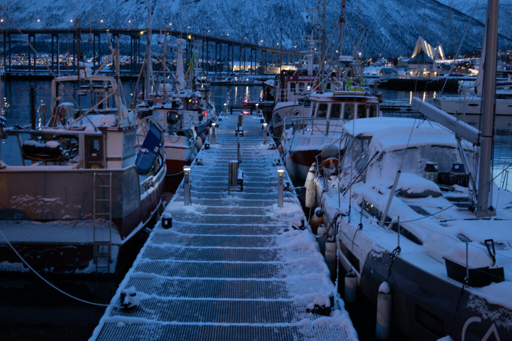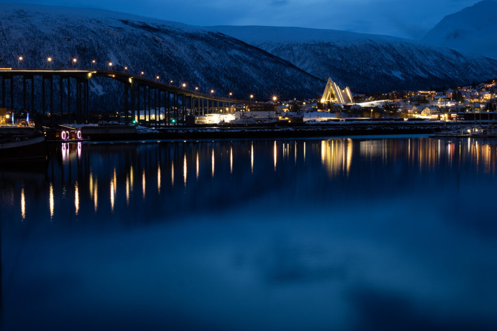 ノルウェー北極圏3日目 In the Norwegian Arctic:Day3 -Along the Coast 未分類 2026.02.28 2026年2月16日月曜日 夜明け前北極教会とトロムソ橋 空が明るくなってきた2月の北極圏なので、もちろん気温は氷点下 トロムソには大学があり学生の街でもある