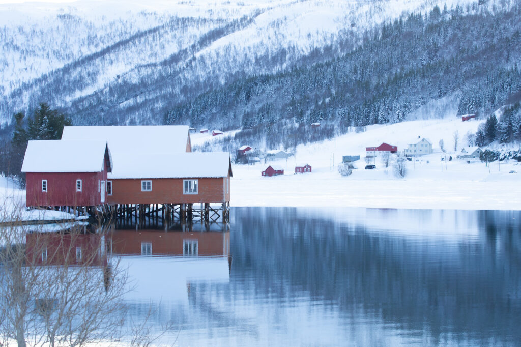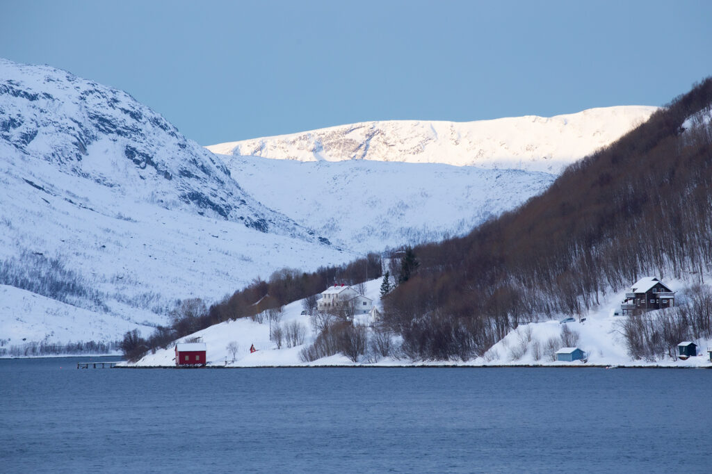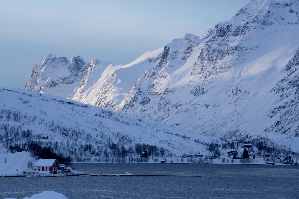 ノルウェー北極圏3日目 In the Norwegian Arctic:Day3 -Fylkesvei 862 未分類 2026.02.28 2026年2月16日月曜日 Henrikvik(ヘンリクヴィーク)3日目にして初めて青空が広がった Sjøtunvegen(ショートゥンヴェーゲン)9100 Kvaløysletta(クヴァルオイスレッタ)付近で見かけた景色